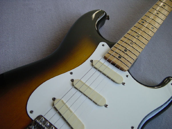 1986 NONE E619487 86年のFenderJapan 115 のアルダーBody(ラッカー)とテレキャスター・ネックのコラボレート ジャパフェンの薄い握りが好みでないため、ネックのみ購入し自らラッカー塗装を試みた ネックのきめ細かいトラ目が何とも言えない、現在、レースセンサー搭載中 BACK